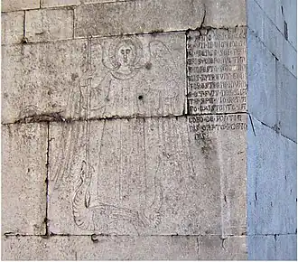 Aan de binnenzijde van de poort is een interessante tekening in de steen gegraveerd. Het stelt een engel voor die een draak doodt met een speer. In zijn andere hand houdt hij een bol. Naast de engel staat een lange Latijnse tekst, die gaat over een groot gevecht dat bij de poort plaatsvond in 1327. In deze tijd waren de Pausen in ballingschap in Avignon. Het leger van Koning Robert van Napels vocht tegen een plaatselijk leger, grotendeels bestaand uit burgers. De troepen van Koning Robert hoorden bij de groep der Welfen, die de Paus steunden. Het burgerleger hoorde bij de Ghibellijnen, die met de Duitse Keizer sympathiseerden. De lokale bevolking won de slag.