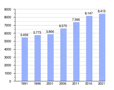 Bron: Statistics Canada (1991–1996[3], 2001–2006[4], 2011–2016[5], 2021[6])
