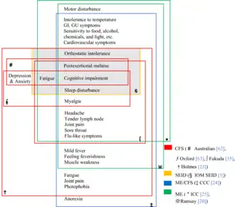 De diagnostische criteria variëren per ziekte en zijn soms het onderwerp geweest van intense discussies. Er zijn bijvoorbeeld verschillende definities van ME/CVS in gebruik.[1]