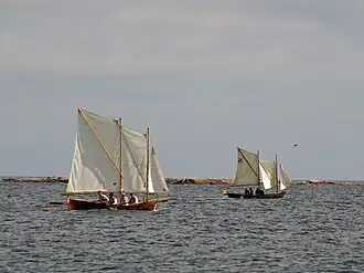 - Enkele honderden kilometers noordelijker loopt ook een historische postroute, tussen de Zweedse Holmöarna en het Finse Svedjehamn op het eiland Björkö (gemeente Korsholm), 36 zeemijlen (ca. 60 km) over de zeestraat Kvarken.[5] Ook hier worden jaarlijks in juni, op de eerste zaterdag na midzomer, postregatta's gehouden.