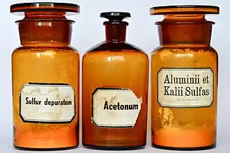 Het begrip potjeslatijn komt van de geleerd aandoende benamingen als aqua rosa voor rozenwater en sulphur depuratum voor poederzwavel die gebruikelijk waren op etiketten van potten en flessen in oude drogisterijen en apotheken.