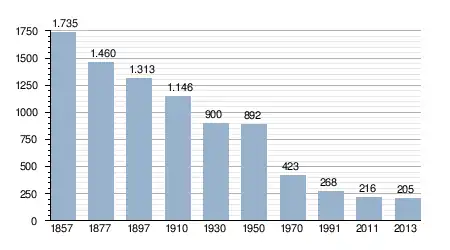 - Bron: INE, 1857-2011: volkstellingen