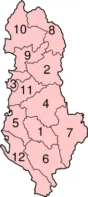 | 12 | Vlorë | Delvinë, Sarandë, Vlorë | 2.706 | 184.279 | Vlorë |
