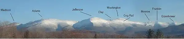 - Mount Washington — genoemd naar George Washington (toen de berg naar hem genoemd werd, was hij nog een generaal; pas later ook president)