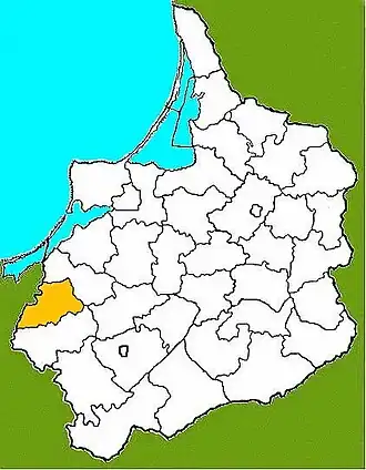 Het wapenschild van het gebied toonde een wit religieus schild met een zwart kruis, in het midden een klein wapen met een rode leeuw op een gouden achtergrond.
