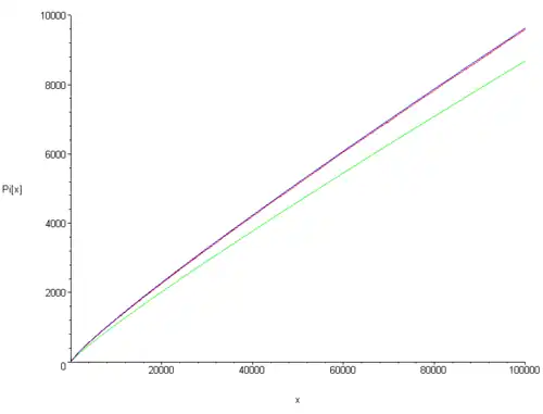 Gebaseerd op de priemgetallentabellen van Felkel en Vega uitte Legendre in 1796 het vermoeden dat wordt benaderd door de functie , waarin een constante dicht bij 1 is. Gauss hield zich in ongeveer dezelfde tijd als Legendre met hetzelfde vraagstuk bezig en kwam op basis van de voorliggende berekeningen en enige heuristische redeneringen met zijn eigen benaderingsfunctie, de logaritmische integraal , maar publiceerde zijn resultaten niet. De formules van zowel Legendre als Gauss betekenen dat en naar dezelfde waarde naderen. De benadering van Gauss blijkt beter te zijn, als de verschillen in plaats van de quotiënten worden beschouwd.