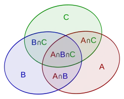 Het principe is gemakkelijker te begrijpen in het geval van drie verzamelingen. Het principe wordt voor de verzamelingen en gegeven door