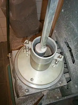 De maximale dichtheid wordt bepaald aan de hand van een test. Een machine met een gewicht van 2,5 kg(normaal) of 4.5 kg (versterkt) met een oppervlakte van 50,8 mm² slaat met 25 (diameter 100mm) of 56(diameter 150 mm) slagen per laag het monster aan, het aantal lagen verschilt per type te testen materiaal (3 tot 5), de lagen zijn gemiddeld 40 mm dik. De foto toont de cilinder met inhoud die wordt aangeslagen door het betreffende gewicht. Op het plaatje is een cilinder met een inhoud van 0,942 dm³ te zien.