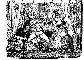 - ↑ De tekening is geïnspireerd op een werkelijk bestaande prostituee Sally Salisbury (circa 1692-1724)