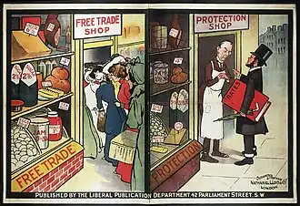 De vrijhandel in het Verenigd Koninkrijk begon serieus met de intrekking van de Corn Laws in 1846, wat neerkwam op vrije handel in graan. Ook de tarieven op veel industrieproducten werden afgeschaft. Maar terwijl de vrijhandel in het VK vooruitgang boekte, ging het protectionisme op het continent door. Het Verenigd Koninkrijk had unilateraal vrijhandel ingevoerd in de ijdele hoop dat andere landen zouden volgen, maar de Verenigde Staten kwamen na de Burgeroorlog nog explicieter protectionistischer uit de hoek dan voorheen, Duitsland onder Bismarck verwierp vrijhandel, en de rest van Europa volgde.[52]