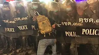 - ↑ Thaise politie maakt einde aan protestactie bij kantoor premier. nos.nl. Geraadpleegd op 15 oktober 2020.