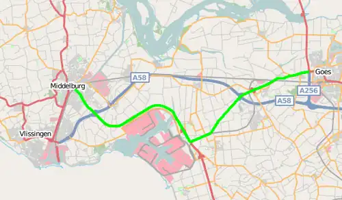 De weg is grotendeels uitgevoerd als vierstrooks-stroomweg (autoweg). Tussen de aansluiting met de A58 bij Middelburg en het Sloegebied is hij uitgevoerd met twee rijstroken per rijrichting. Over de gehele lengte geldt een maximumsnelheid van 100 km/h. In de gemeente Borsele heet de weg Bernhardweg West, in de gemeente VlissingenMiddelburgse Schroeweg en Sloeweg-Noord en in de gemeente MiddelburgSchroeweg.