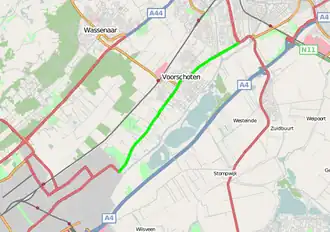 De weg valt samen met het voormalige tracé van de NZH-Blauwe Tram, welke tot 1961 onder meer van Leiden naar Den Haag reed.