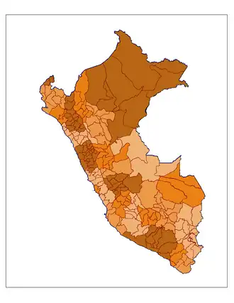 Peru is sinds 18 november 2002 onderverdeeld in regio's, provincies en districten. Het tweede niveau van de onderverdeling is de provincie (provincias; enkelvoud: provincia). Er zijn in totaal 25 regio's, die zijn onderverdeeld in 195 provincies. De provincie Lima is een zelfstandige provincie en maakt geen onderdeel uit van een regio. Het totaal aantal provincies is 196. De provincies zijn weer onderverdeeld in districten (1874, stand 2016).
