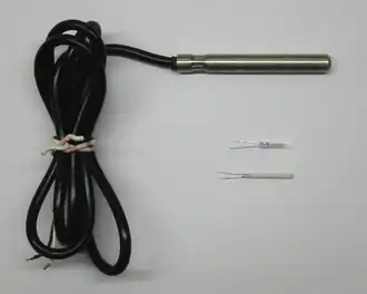 - Ni100: Nikkel, met een temperatuurbereik van −60 °C tot 180 °C, het is goedkoper en gevoeliger dan platina.