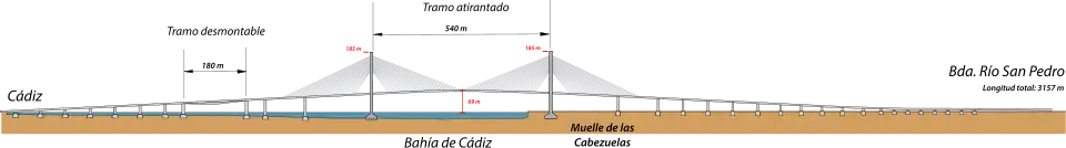 De brug heeft een totale lengte van vijf kilometer, inclusief de af- en toeritten. Hiervan is zo'n 3,1 kilometer boven land en 1,65 kilometer over zee. Er zijn twee pylonen van elk 185 meter hoog, waarvan er een in zee staat en de andere in de haven van Cabezuelas. Het brugdek tussen de pylonen is 540 meter lang en het dek ligt 69 meter boven de zeespiegel waardoor het scheepvaartverkeer nauwelijks wordt gehinderd. Er is ook nog een brugdeel dat open kan, hier kunnen hogere schepen door maar deze breedte is beperkt tot 150 meter.