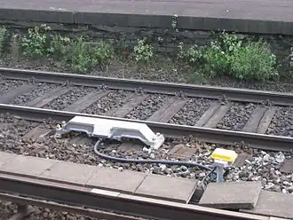 - Direct naast een stoptonend sein is een magneet aangebracht met een frequentie van 2000 hertz. Als een magneet is ingeschakeld met een frequentie van 2000 hertz en een trein deze magneet passeert, volgt direct een snelremming. De afstand tussen het stoptonende sein en het beveiligde gevaarpunt is zo groot dat de trein tijdig tot stilstand zal komen.