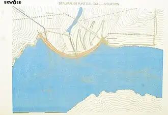 De dam ligt in de vallei van de kleine Spöl rivier. Voor de vorming van het stuwmeer en net ten zuiden van de huidige locatie van de dam vloeide de Acqua del Gallo, een Italiaans beekje, uit in de Spöl. Op die locatie was er een voormalige brug over de Acqua del Gallo of Gall in het Reto-Romaans, een brug die in die taal werd aangeduid als de Punt dal Gall.