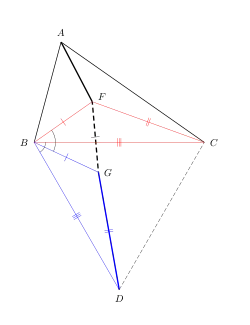 - Construeer drie gelijkzijdige driehoeken buiten de drie zijden van de gegeven driehoek ABC.