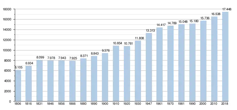 - Bronnen:NIS, Opm:1806 tot en met 1970=volkstellingen; 1976 = inwoneraantal op 31 december