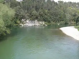 Bij Unquera wijzigt de naam van de rivier in Ría de Tina Mayor, om enkele kilometers verder in de Golf van Biskaje uit te monden. De laatste kilometers vormt de rivier een getijdenrivier.