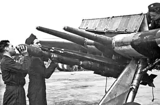 Tijdens de Slag om Normandië werd het hoofdkwartier van Panzergruppe West gevestigd in het kasteel van La Caine. Op 8 juni werd de locatie van het hoofdkwartier door Ultra in Bletchley Park aan de Britse inlichtingendienst bekendgemaakt. Op 10 juni bombardeerden vliegtuigen van de Second Tactical Air Force het dorp. De aanval werd uitgevoerd door 42 Typhoons van 124 Wing, bestaande uit de 181, 182 en 247 Squadrons en 245 Squadron van 121 Wing, die in drie golven aanvielen vanaf lage hoogte en door 61 B-25 Mitchell van 137 en 139 Wings, bestaande uit 226, 98, 180 en 320 (Nederlandse) Squadrons, gooiden 500 pond (230 kg) bommen vanaf 12.000 voet (3700 m).