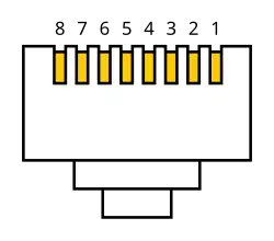 - NB: Oorspronkelijk was een Registered Jack bedoeld voor telefoonaansluitingen, vandaar het eerste kabelpaar in het midden en het tweede kabelpaar daar omheen.