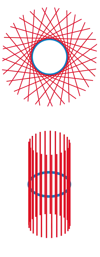 Informeel verkrijgt men de raakbundel van een variëteit (in dit geval een cirkel) door alle raakruimten (bovenste plaatje) te beschouwen, en ze op een gladde en niet-overlappende manier (onderste plaatje) samen te voegen.