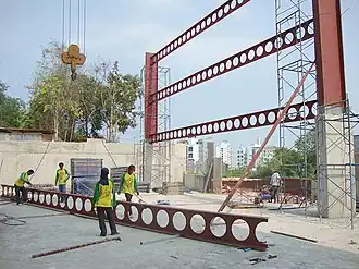 Een raatligger is een verhoogde stalen balk met in het lijf of middenstuk raatvormige openingen die ontstaan zijn door het productieproces.