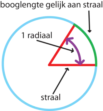 - ↑ Eén radiaal komt overeen met of ongeveer 57,29577951°, in booggraden.