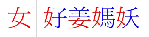 | Radicaal 38 (U+2F25) 女 (U+5973) "vrouw / vrouwelijk" | ||||