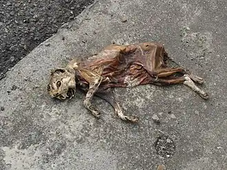 Van de in totaal 214 Kangxi-radicalen heeft radicaal 44 de betekenis kadaver. Het is een van de eenendertig radicalen die bestaat uit drie strepen.