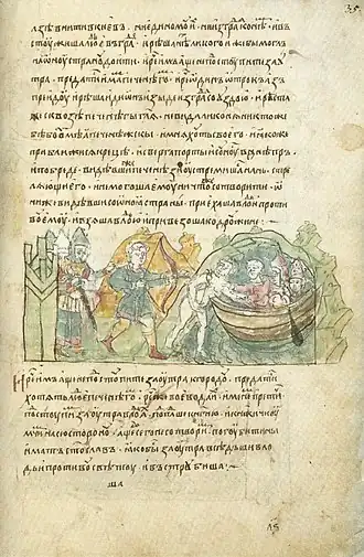 Folio 68 uit de Radziwiłłkroniek (documentnummer "34.5.30"), bewaard in de Bibliotheek van de Russische Academie van Wetenschappen in Sint-Petersburg.[1]