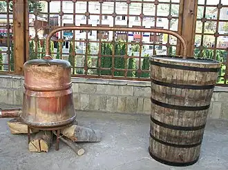 - ↑ Kom of džibra is het fruitige druivenpulp dat overblijft na de bereiding van wijn. Het bevat tot 5,5 liter zuivere alcohol per 100 kg, en ten minste 40% droge stof.