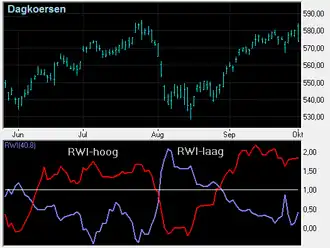 In de technische analyse wordt de RWI gerepresenteerd door twee lijnen: de RWI-hoog en de RWI-laag. Deze twee lijnen slingeren zich om de 1-lijn. Als de RWI-hoog boven de 1 komt, betekent dit dat de koersen zich in een significante stijgende trend bevinden. Bij een RWI-laag boven de 1-lijn betekent dit dat de koersen zich in een significante dalende trend bevinden.[2]