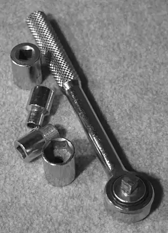 Ook een pompschroevendraaier heeft een ratelmechanisme. Deze schroevendraaier wordt tegenwoordig meestal vervangen door elektrische schroevendraaiers of elektrische boormachines met schroefbits.