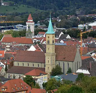 - Weingarten; deze stad is bijna tegen het noordoostelijke deel van Ravensburg aan gebouwd