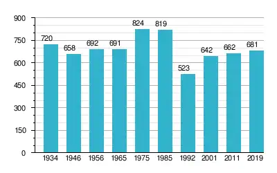 In de eerste volkstelling van 1934 registreerde het dorp 720 inwoners. Dit groeide tot een officiële hoogtepunt van 824 inwoners in 1975. Na een dieptepunt in 1992 met 523 inwoners, groeit het inwonersaantal weer. Op 31 december 2019 telde het dorp 681 inwoners.[1]