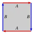 ![]() De Möbiusband met een enkele rand kan "into" een projectief vlak worden gesloten door de tegenoverliggende open randen aan elkaar te plakken. |