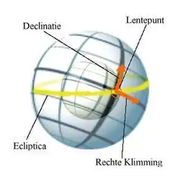 'Rechte klimming' wijst erop dat een ster op de evenaar in dat punt loodrecht op de horizon opkomt.