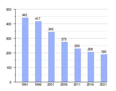 | Bron: Statistics Canada (1991–1996[4], 2001–2006[5], 2011–2016[6], 2021[7]) |