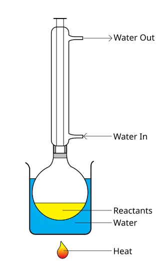 Een refluxopstelling wordt algemeen gebruikt in de organische synthese. In het algemeen geldt dat een hogere temperatuur in een reactiemengsel zorgt voor een hogere reactiesnelheid. De reagentia (de met elkaar te reageren stoffen) bezitten bij hogere temperatuur een hogere kinetische energie waardoor effectieve botsingen vaker plaatsvinden. Zo kunnen ze bij hogere temperatuur sneller met elkaar reageren. Door het oplosmiddel te koken, zou dit echter door verdamping uit de kolf verdwijnen. Door echter een koeler op de kolf te plaatsen, condenseert het oplosmiddel weer terug van gasvorm naar vloeibare vorm. De koeler zorgt er zo voor dat er geen oplosmiddel of reactieproduct ontsnapt, maar condenseert en terug in de kolf drupt. Een stop is hier niet bruikbaar omdat er een te hoge druk zou ontstaan en de kolf zou kunnen ontploffen. Verder geldt dat wanneer zeer vluchtige reactieproducten niet kunnen ontwijken (zoals gasvormig CO2), een evenwichtsreactie waarbij dergelijke producten ontstaan, niet zal aflopen.