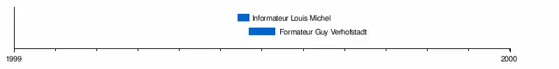 Na de verkiezingen voor het federale parlement in België op 13 juni 1999 ging de formatie van een nieuwe federale regering van start. Hierbij leden de regeringspartijen (CVP, PSC, PS en SP) zware verliezen. Er was enkel een symmetrische regering mogelijk met minstens drie politieke families. De koning benoemde op 15 juni PRL-voorzitter Louis Michel tot informateur. Hij bracht verslag uit op 23 juni, waarna de koning VLD-voorzitter Guy Verhofstadt belastte met een formatieopdracht. Hij kon samen met de liberalen, de socialisten en de groenen een regering vormen. Regering-Verhofstadt I legde op 12 juli 1999 de eed af. Dit was daarom een van de snelste regeringsformaties in de naoorlogse Belgische geschiedenis. Ze duurde 29 dagen.