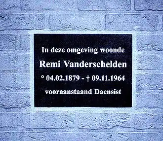 In november 2003 werd te Deerlijk een gedenkplaat ingehuldigd ter ere van Remi Vanderschelden. Deze kwam er op aangeven van zijn goede vriend Albert Bruggeman.[2] Ook de lokale afdeling van het Davidsfonds, de Stichting René De Clercq (nu René De Clercqgenootschap) en het Priester Daensfonds werkten mee aan dit initiatief.