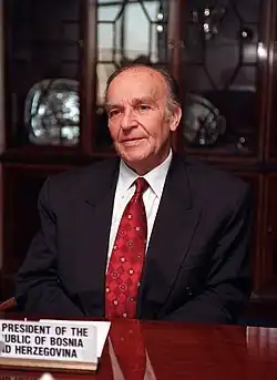 De parlementsverkiezingen van 1990 leidden tot een nationale vergadering die werd gedomineerd door drie etnisch gebaseerde partijen, die een losse coalitie hadden gevormd om de communisten uit de macht te zetten. De daaropvolgende onafhankelijkheidsverklaringen van Kroatië en Slovenië en de oorlog die daarop volgde, plaatsten Bosnië en Herzegovina en de drie samenstellende volkeren in een lastige positie. Al snel ontstond er een aanzienlijke verdeeldheid over de vraag of ze bij de Joegoslavische federatie moesten blijven (met overweldigende voorkeur onder de Serviërs) of onafhankelijkheid moesten zoeken (met overweldigende voorkeur onder Bosniërs en Kroaten). Een soevereiniteitsverklaring in oktober 1991 werd gevolgd door een referendum voor onafhankelijkheid van Joegoslavië in februari en maart 1992. Het referendum werd geboycot door de overgrote meerderheid van de Bosnische Serviërs, dus met een opkomst van 64%, waarvan 99% voor het voorstel stemde, werd Bosnië en Herzegovina een soevereine staat.[8]