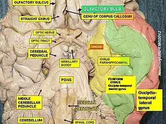 - ↑ (bestaande uit de area praepiriformis, het laterale deel van de substantia perforata anterior en de amygdala).