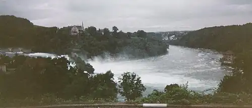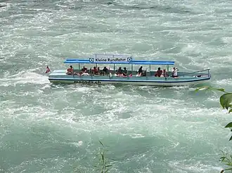 Het dichtstbijzijnde plaatsje is Neuhausen am Rheinfall, waar toeristen ook Schloss Wörth (kasteel) kunnen bezoeken. Naar de watervallen en de Rheinfallfelsen (rotsen van de waterval), en mede over de Rijn zelf, kunnen verschillende soorten boottochten gemaakt worden. Deze kunnen apart gemaakt worden of na elkaar in een combi-trip (Kombi-Fahrt).