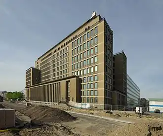 Het Rhijnspoorplein werd gedomineerd door drie grote kantoorgebouwen uit de jaren vijftig en zestig: de Raad van Arbeid, het gebouw van de Belastingdienst en het Wibauthuis. Dit laatste gebouw is gesloopt in 2007. Het gebouw van de Raad van Arbeid heet nu Benno Premselahuis en het voormalige Belastingkantoor heet nu Kohnstammhuis. De gebouwen zijn nu in gebruik bij de Hogeschool van Amsterdam (HvA)