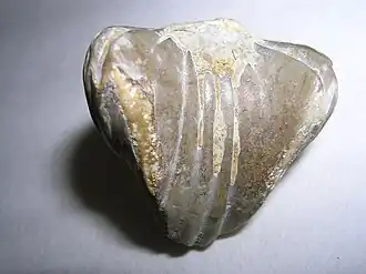 Deze 1,75 tot 3,75 centimeter lange articulate brachiopode kenmerkt zich door een driehoekige omtrek en een korte slotrand. Verder heeft de schelp een bolvormig profiel, krachtige ribben en een groeve.