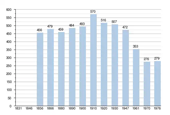 - Bronnen:NIS, Opm:1831 tot en met 1970=volkstellingen, 1976= inwoners op 31 december